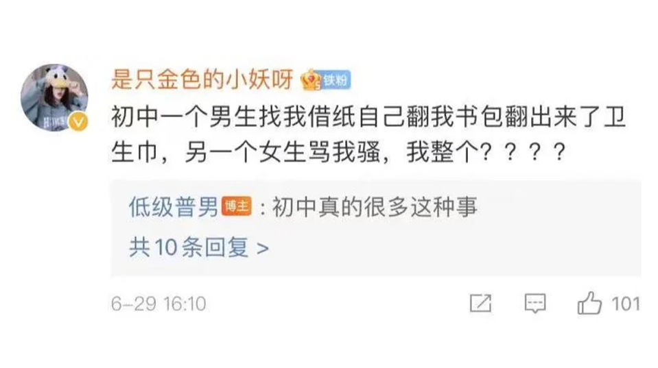 有時甚至是來自同為女生的侮辱:“沒想到她這麼騷。”