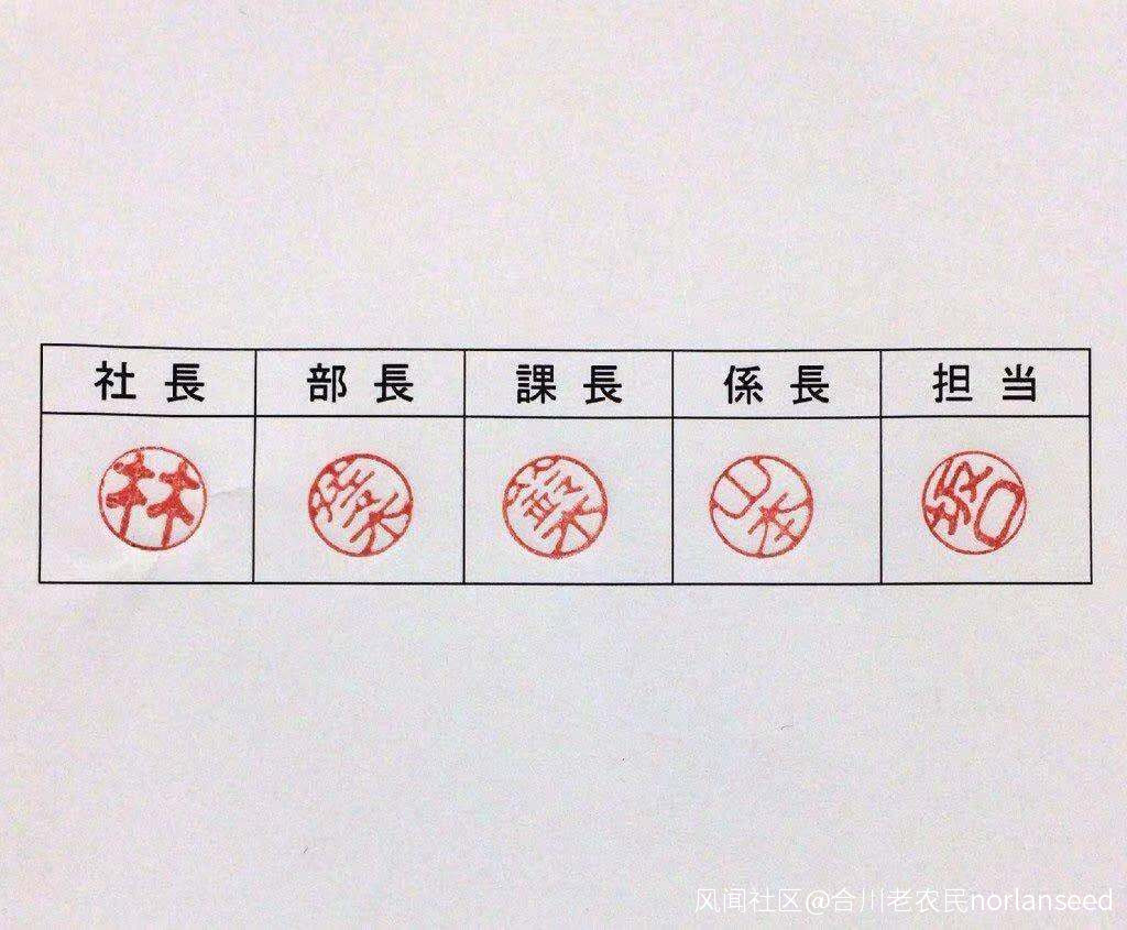 19年末我去日本旅遊,在日立的日本朋友給我好好吐槽了日本的職場文化。即便是在像日立這樣的製造業公司,官僚主義的作風可以説也是非常具體。為了形象説明,他給我看了一張圖,大致是一家日本公司內部不同位階的人該如何蓋章。