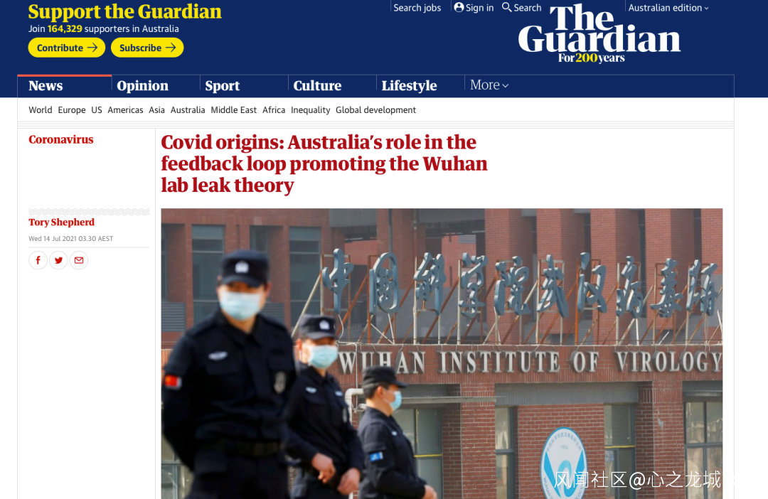 《衞報》澳大利亞版刊文《新冠溯源:澳大利亞在推動武漢實驗室泄露論中扮演了什麼角色》 ,揭露澳大利亞記者沙麗·馬克森與美國右翼勢力聯手炒作新冠病毒“實驗室泄漏論”的相關內幕。(網頁截屏)