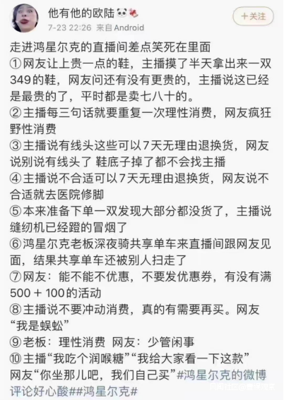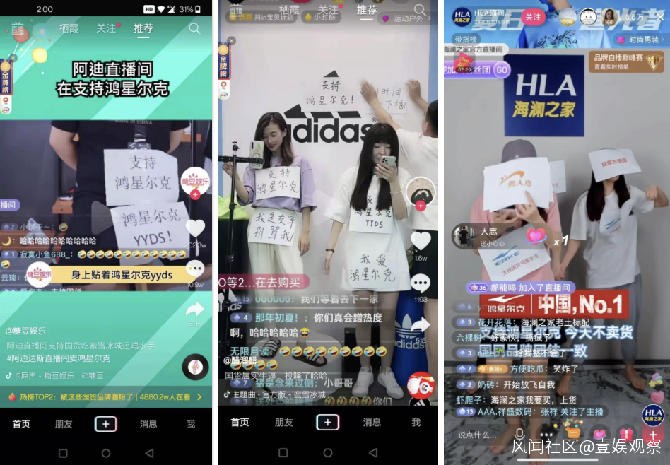 相比娛樂八卦的吃瓜效應,鴻星爾克的直播間已經上升到更高層面。