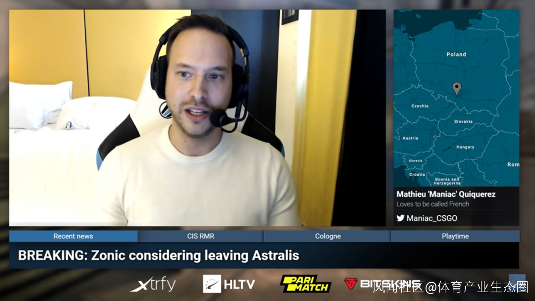 官方解説是在位於波蘭卡托維茨的ESL演播廳進行,圖片來源:HLTV的節目