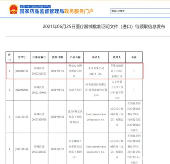 與華為、OPPO、華米等ECG功能通過省級藥監局審批不同的是,蘋果ECG功能通過的是國家藥監局的審批。但這並不意味着蘋果ECG與其他品牌的ECG有高下之分,原因在於蘋果ECG功能設備是進口醫療器械設備,必須要經過國家藥監局審批,這是流程問題而非“高下”問題,所有通過藥監局審核的ECG功能都獲得了二類證。