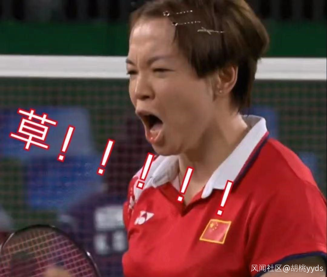決勝局領先的時候,搭檔賈一凡也燃起來了,得分之後,拍子擱了開始一邊頂陳清晨一邊罵:牛!牛啊————!你!!! 不知道的以為兩個人在打架。陳清晨繼續發揚國粹,一聲聲“艹”就是我們國羽女雙勝利的凱歌。