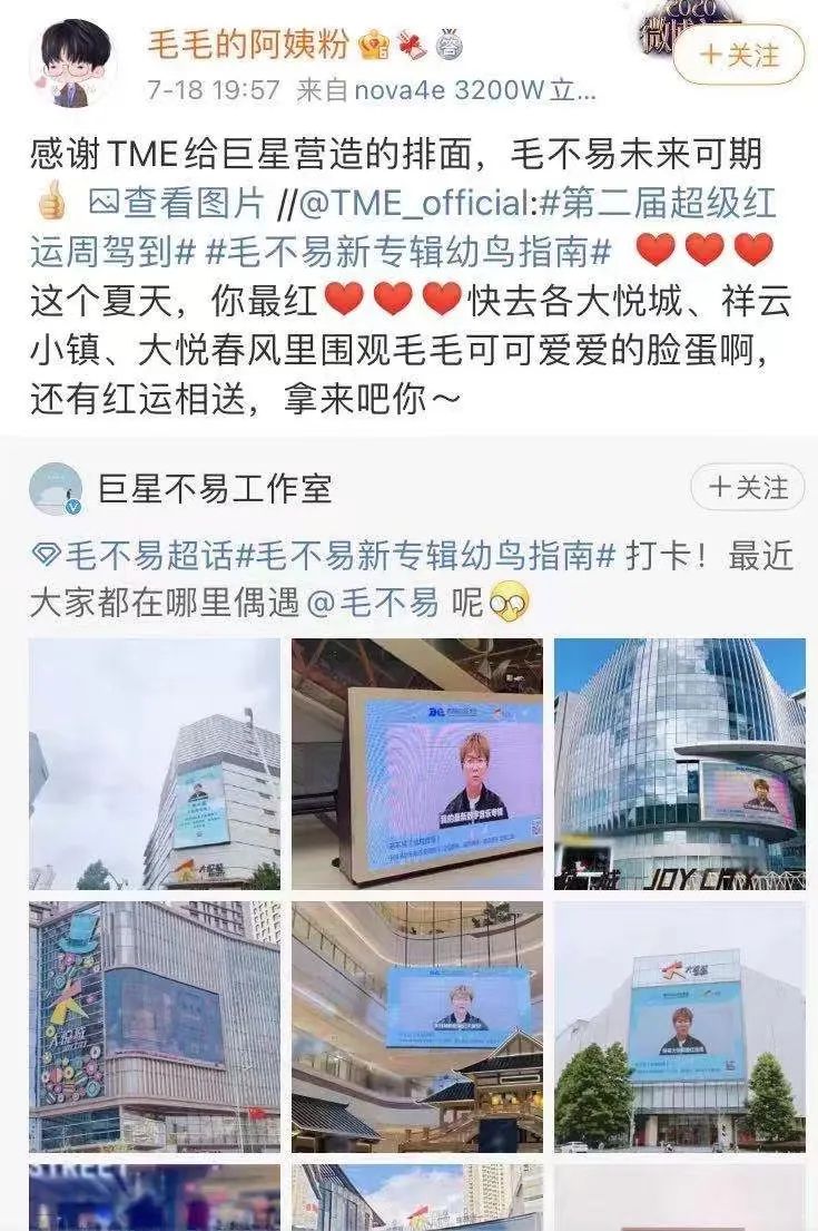 以毛不易在2021年推出的最新專輯為例,“就採用了音樂公播的形式推廣”,他介紹。他們內部認為主打歌《城市傍晚》有能讓大眾共鳴的情緒,就聯合了TME投資的線下公播 (指在公共場所播放音樂) 公司瑞迪歐,在晚高峯時期,以公播的形式,輸送了音樂Cut部分。
