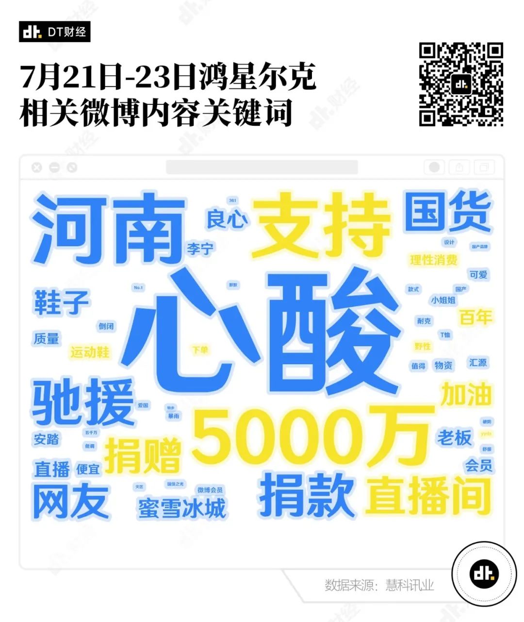 再加上有人傳言“鴻星爾克虧損2.2億還敢捐5000萬”,儘管“虧損”一事被否認了,但這不妨礙羣眾情緒被帶向了更大的高潮。這樣一來,一個純樸善良、低調謙遜、條件不怎麼樣但心地特好、大方又愛國還非常實在的“中華好人”標籤,就這麼出現了。