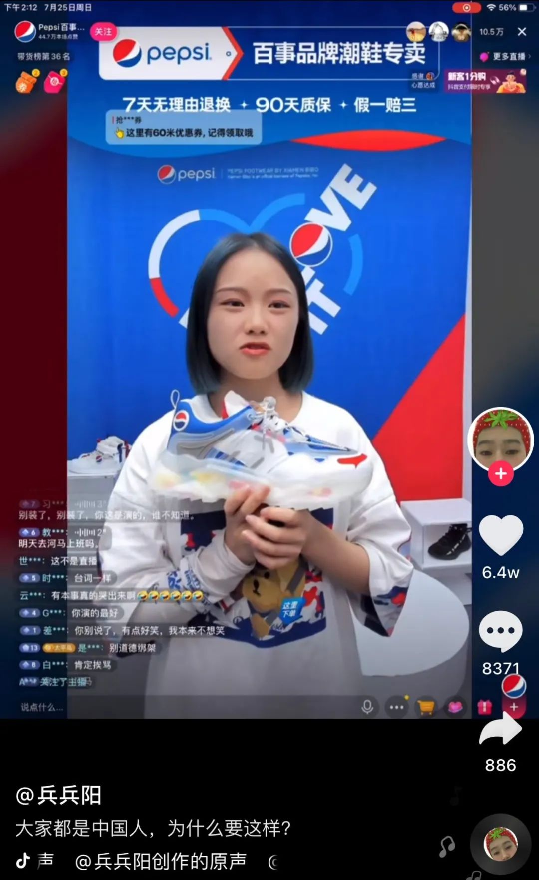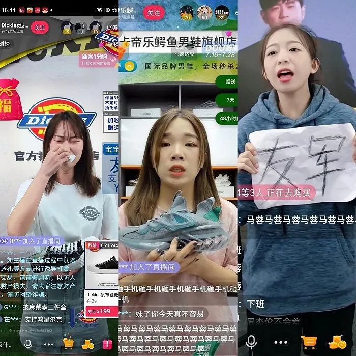 這位女主播捧着一隻鞋,面色難看,帶着哭腔説:“我還介紹產品嗎?我介紹要你們要罵我,我不介紹你們還要罵我……”