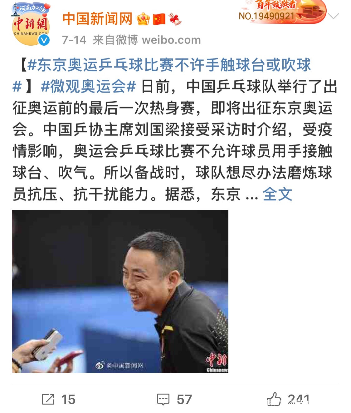 同時,受疫情影響,東京奧運乒乓球比賽不許手觸球枱或吹球。因此劉國樑表示球隊想盡辦法磨練球員的抗壓、抗干擾能力,充分遵守規則。