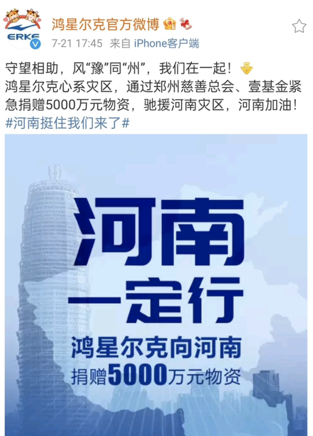 鴻星爾克董事長甚至大晚上騎着單車親自來了,