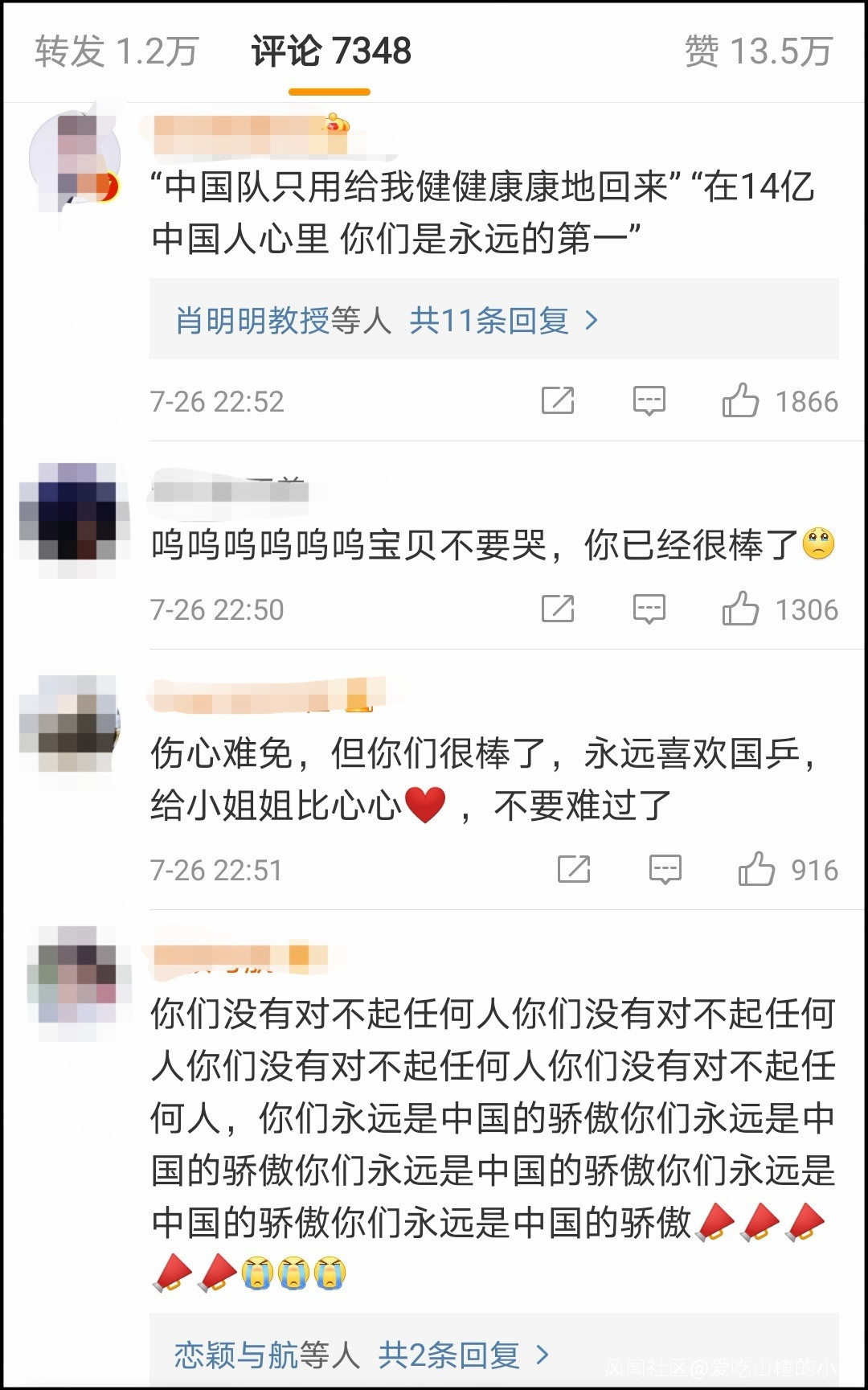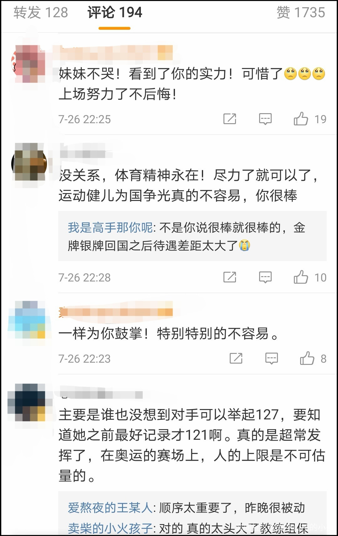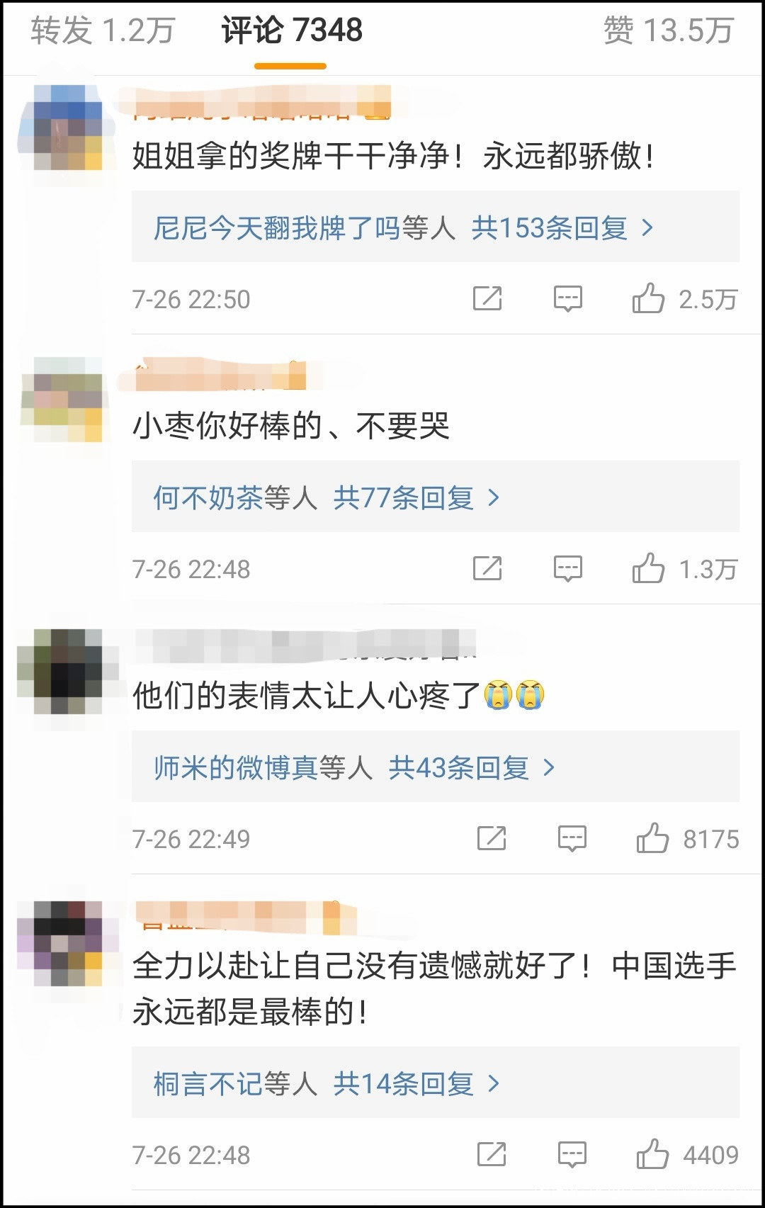 讓我感到暖心的,是不管有沒有取得很好的成績,每個身披國旗出征的運動員下的微博評論充滿着鼓勵與支持。
