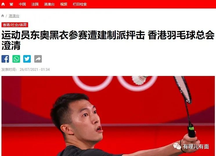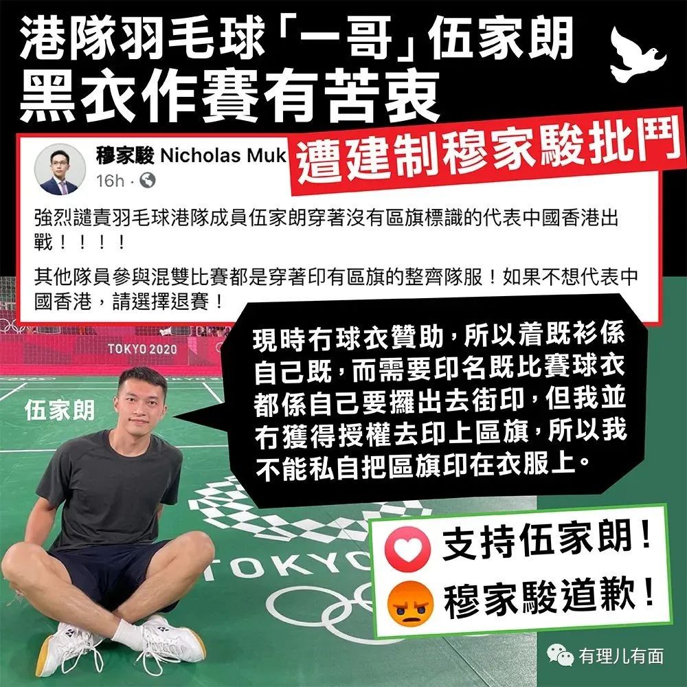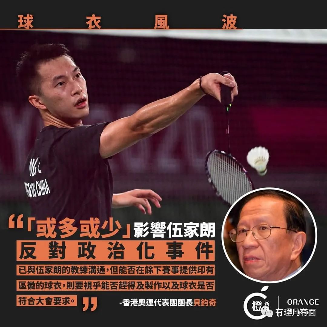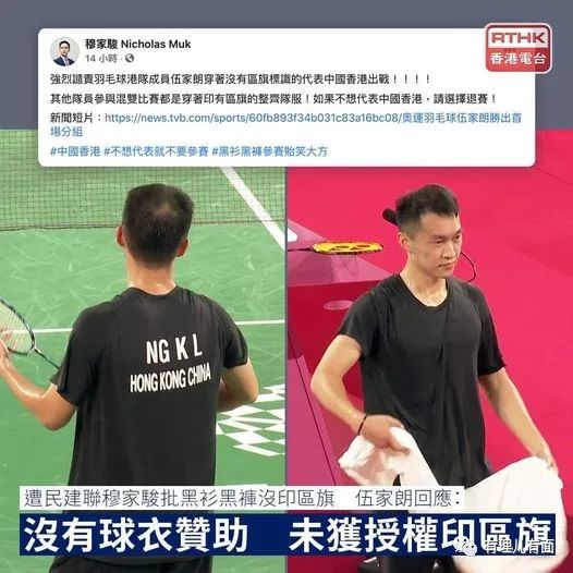 但是7月24日代表中國香港隊的羽毛球男單運動員伍家朗,身着一身黑衣參賽,在香港引發了激烈的爭議。