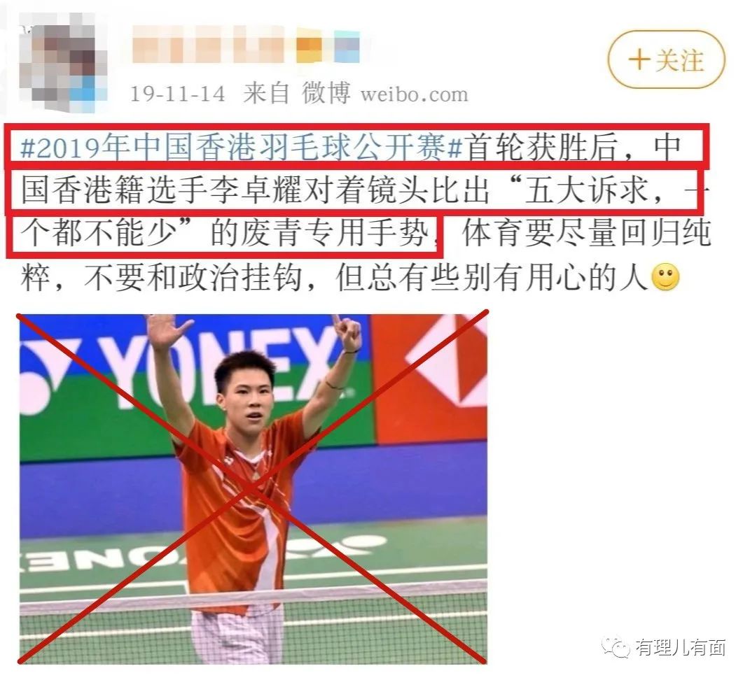 雖然過去香港羽毛球隊在其他比賽中出過運動員舉“五大素球、缺衣不可”手勢的醜聞,但是國安法實施後這些也銷聲匿跡了。伍家朗以前也確實沒有參與,不能説他有港毒問題。