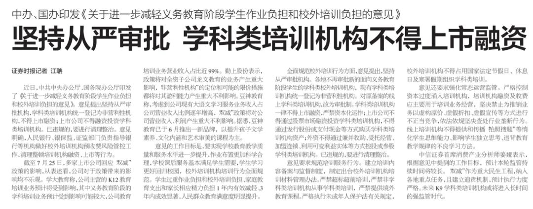 學科類培訓機構不得上市融資引市場迷思、鴻星爾克銷量暴漲52倍_風聞