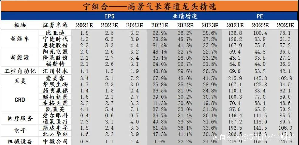 簡單介紹一下“寧組合”:處於高成長性長賽道、景氣度較高的龍頭核心資產組合。圍繞產業發展的先鋒方向,成長性屬性突出,更具時代意義,同時也富有更高的彈性。