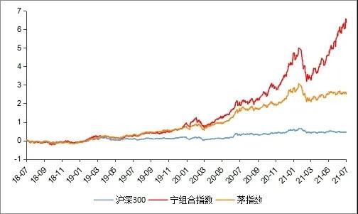 下圖為“寧組合”指數、茅指數、和滬深300指數最近三年的走勢圖。相比“寧組合”638.52%的漲幅,漲幅為248.24%的“茅指數”真是遜色了太多!