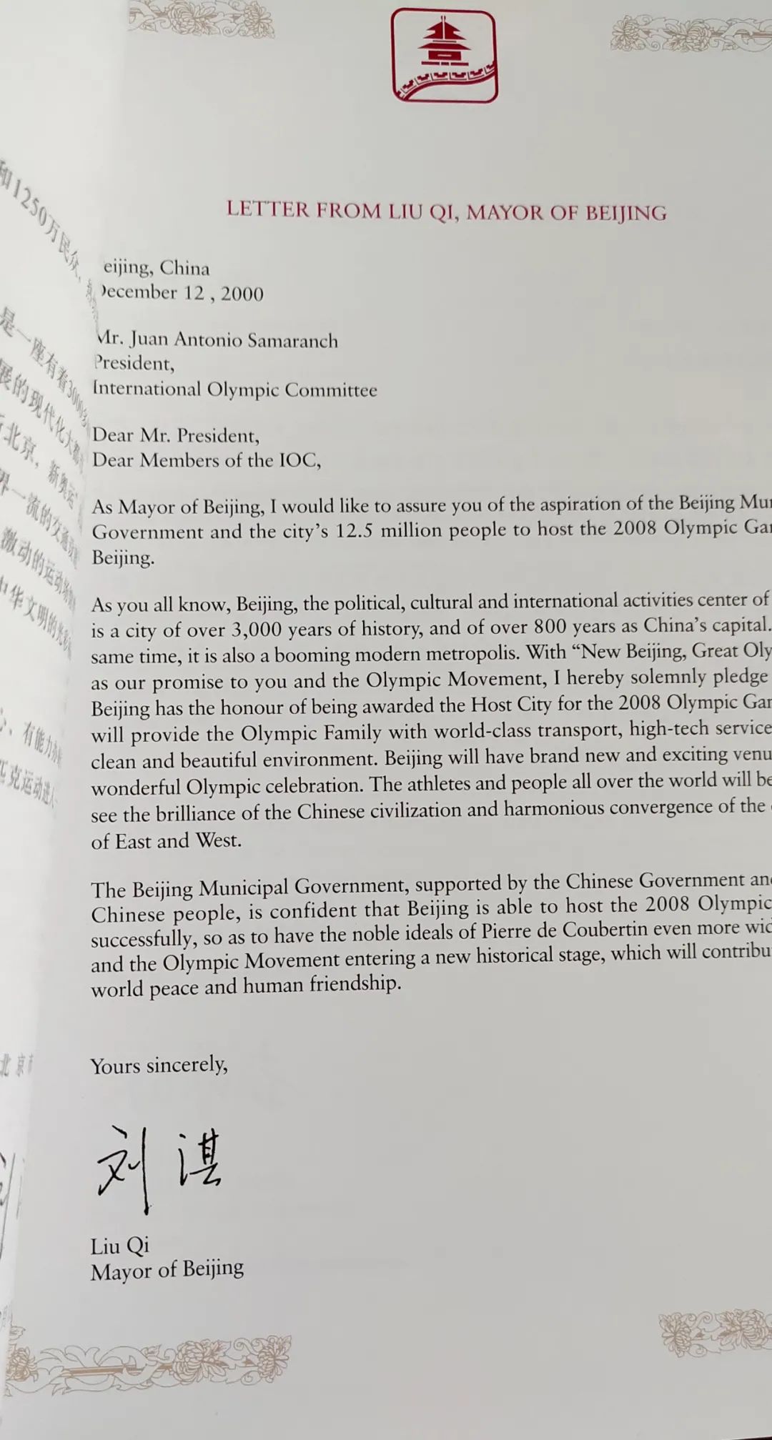 終於獲得了2008年奧運會的舉辦權,