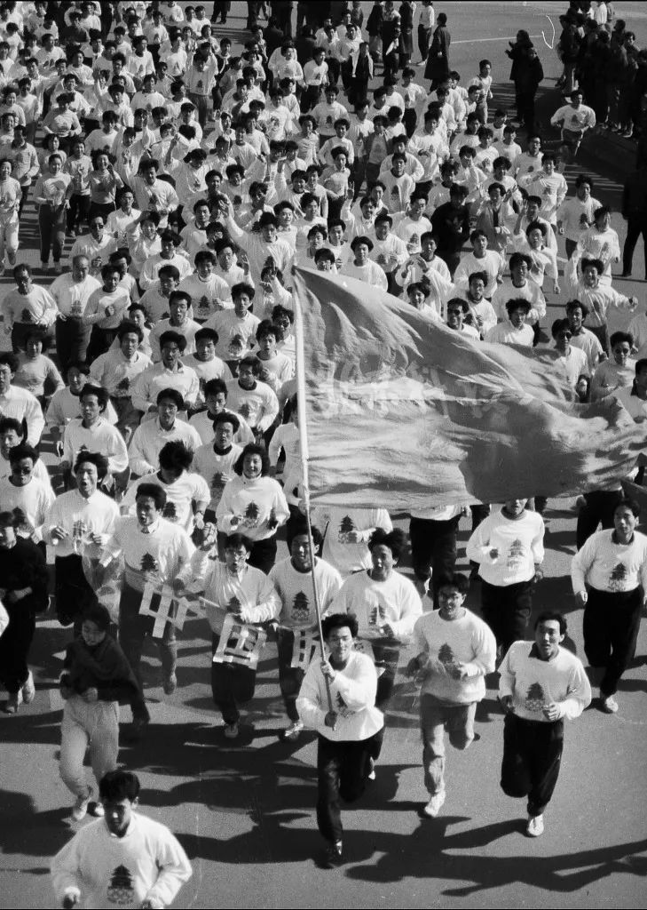 1993年,北京首都大學生打着“中國盼奧運”的旗幟長跑支持申奧。