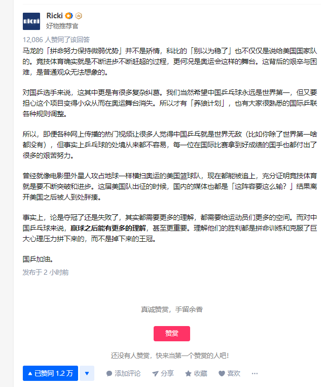 或者中國乒乓球此前贏了太多了,導致大家對國乒的期待非常非常高。乃至於國乒輸球之後,有不少網友無法接受,一定要找一個出氣筒。