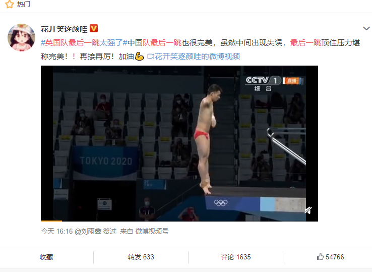 包括今天中國跳水失利了,熱搜卻是“英國隊最後一跳太強了。”