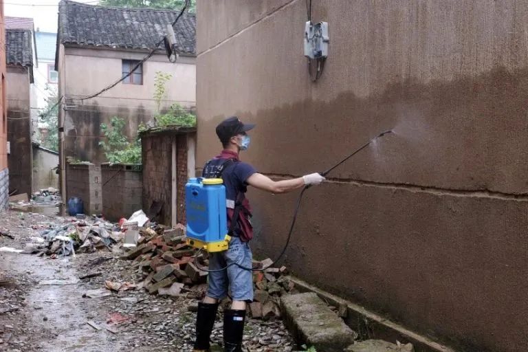 首先,洪水退後,要立即對室內室外,特別是水漫過的地方進行徹底的清理,清除污泥和垃圾污物,對其進行分類和無害化處理,並進行消毒。任何可以接觸的物體表面,如道路、欄杆等都要進行徹底的清理和消毒,防止污物的堆積滋生病原微生物。