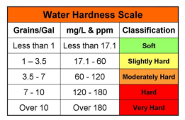 有時候人們會參考美國水質協會(Water Quality Association)給出的範圍,以水中測量到的碳酸鈣含量為指標,具體數字如下: