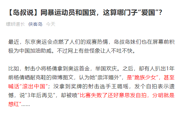 事件發酵至今,連俠客島都看不下去了,今天直接在公號頭條發聲: