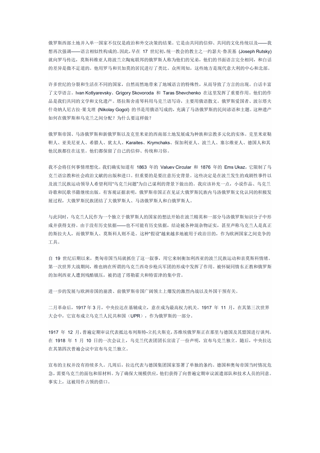 實際上,烏克蘭片面地選擇與俄羅斯割裂歷史聯繫,並不是上策。全然拋棄與俄羅斯共同的歷史,最終會造成烏克蘭的歷史虛無主義。
