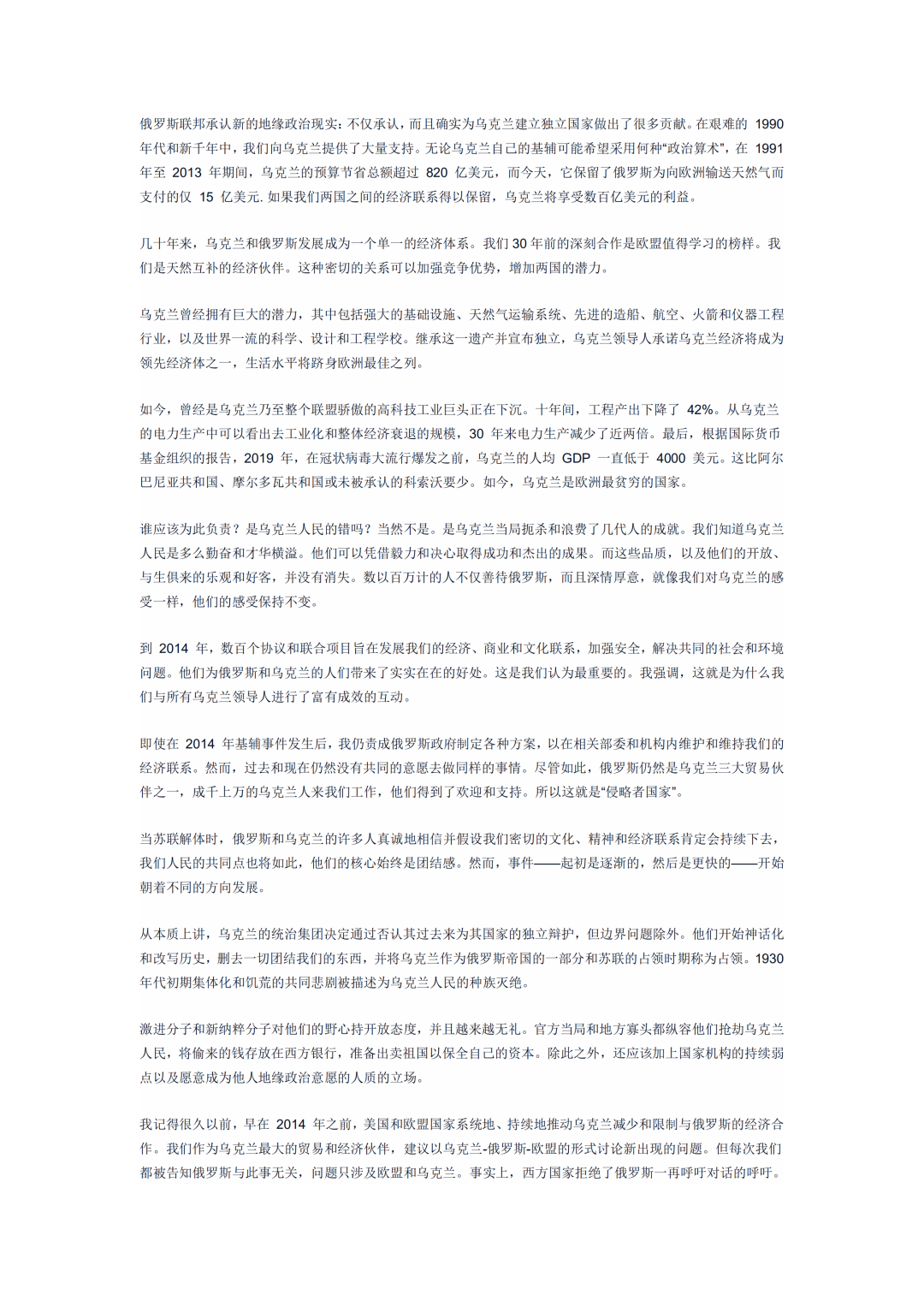這篇文章言辭懇切,用傾訴和勸告的口吻,呼籲烏克蘭人放棄對俄羅斯的仇恨和憤怒。所以在中文網絡上,被網友們戲稱為《告烏克蘭同胞書》。