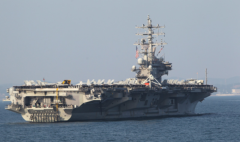 美軍“里根” 號核動力航空母艦。圖|新華社