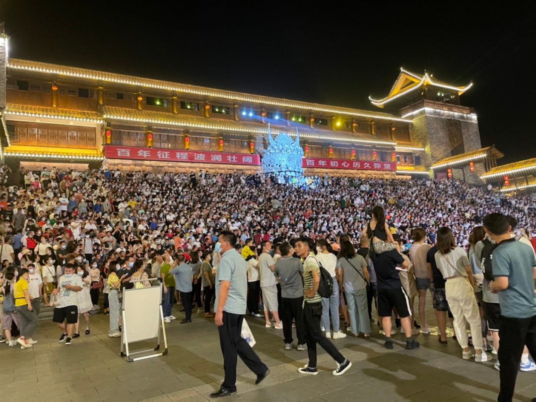 微博用户“桃汁奶泡兔”17日拍攝的“魅力湘西”演出現場