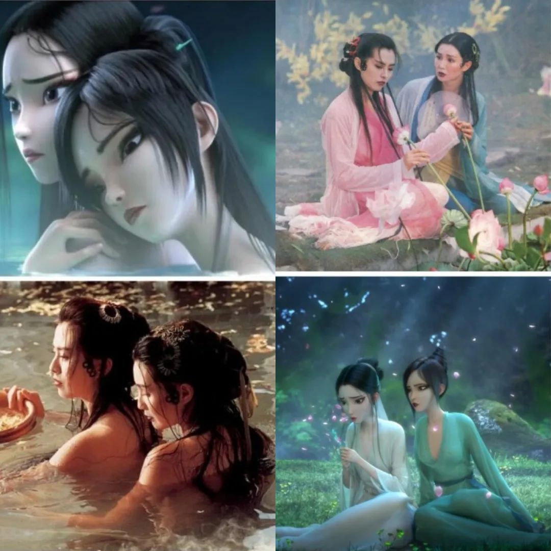 小青小白在草坪席地和水中沐浴的兩段戲致敬了徐克的《青蛇》,美輪美奐,十分出圈。