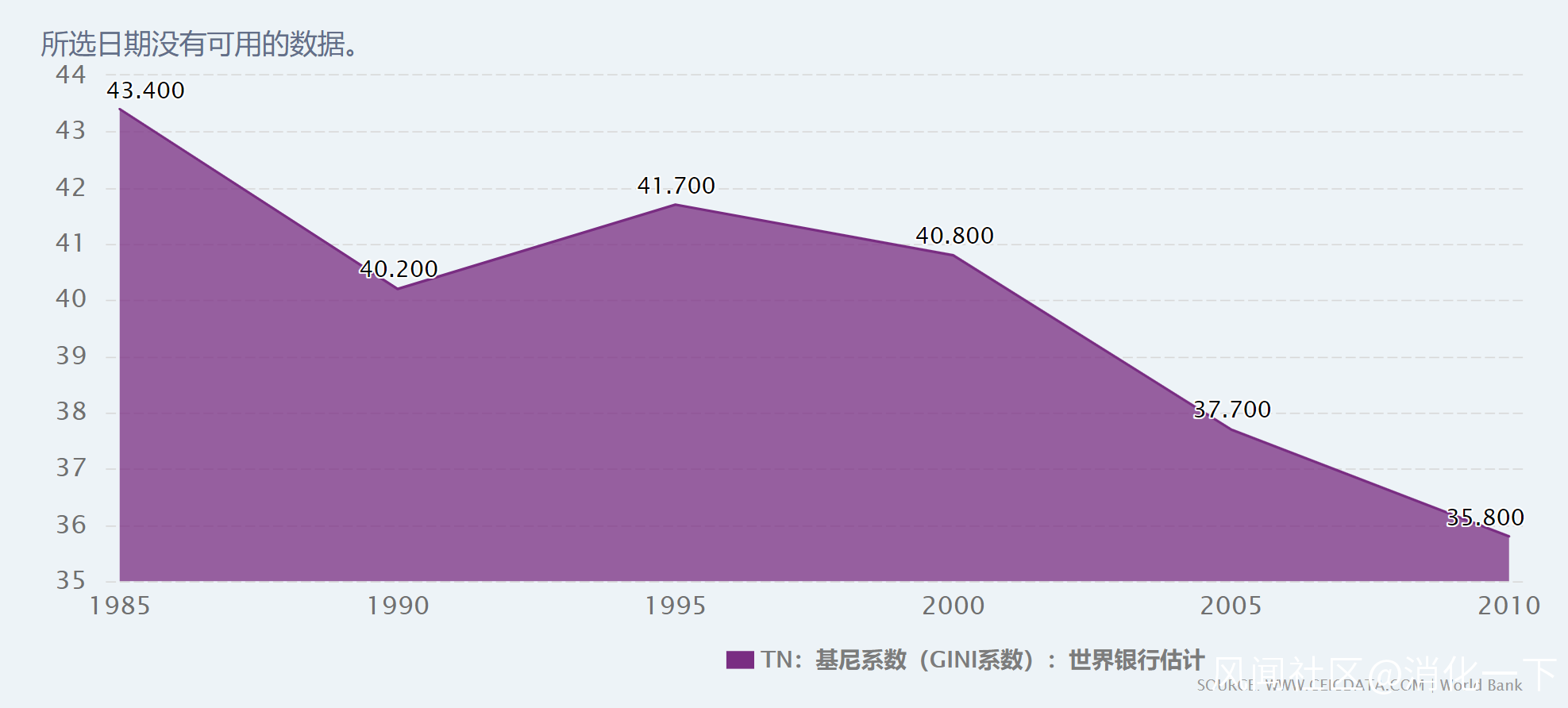 2011年,27歲青年穆罕默德·布瓦吉吉,在當地政府大樓前自焚,並於18天后不治,成為“阿拉伯之春”的導火索。這個人的背景眾説紛紜。有人説他高中沒畢業,從小擺攤養活家裏六口人,還要供妹妹讀書,人設非常勵志,也很能反映突尼斯社會巨大的貧富差距問題。要知道,當年的突尼斯可是非洲第一富國,經濟競爭力排名世界第40位,人均國民收入超過4000美元,達到了當時的中等收入國家水平。而布瓦吉吉的家,離繁華的市中心只有二十公里遠,卻住在破爛的灰泥房子裏,每個月只能賺140美元,連進點水果拿去賣也要打欠條。兩相一比較,確實挺震撼。不過,2010年突尼斯的基尼係數35.8,是迄今為止最低的一年,而同年美國的基尼係數是40,比突尼斯貧富差距還大,也沒出現什麼極端個案當我沒説。