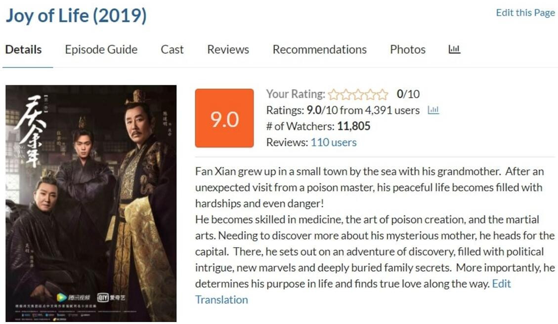 總的來説,我非常喜歡這部劇。很有趣,而且武術編排很贊。我沒有想到我會這麼喜歡它,它是我2019年最喜歡的兩部作品之一。 如果你想找部有意思的劇看,絕對推薦。