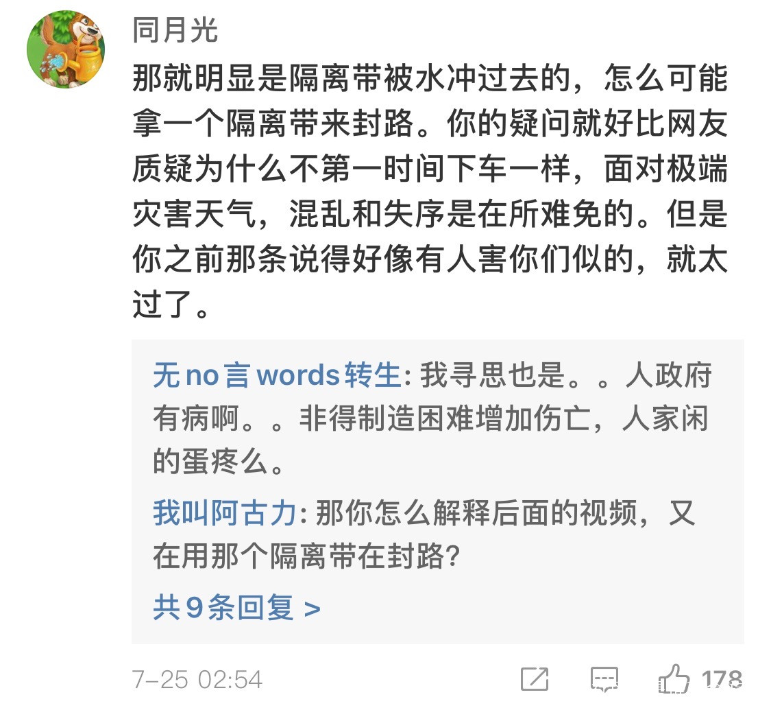 評論中也不乏網友對於這段描述的質疑。對於災害天氣的混亂和失序表示,這是在所難免會發生的事情,認為博主説的太過了。