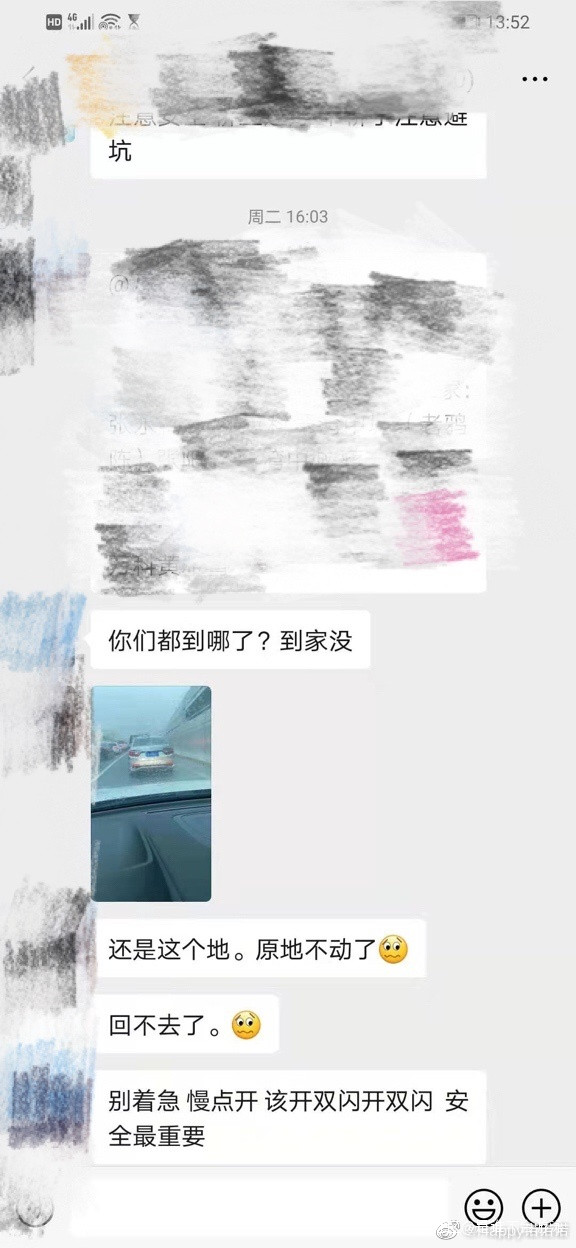 表示自己逃生時手機落在車中,聊天記錄是羣裏朋友所截。同時描述了自己的車的位置及所述已故大哥的位置。