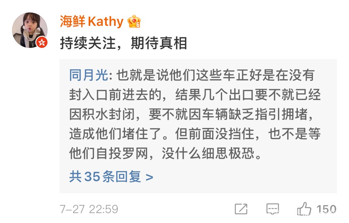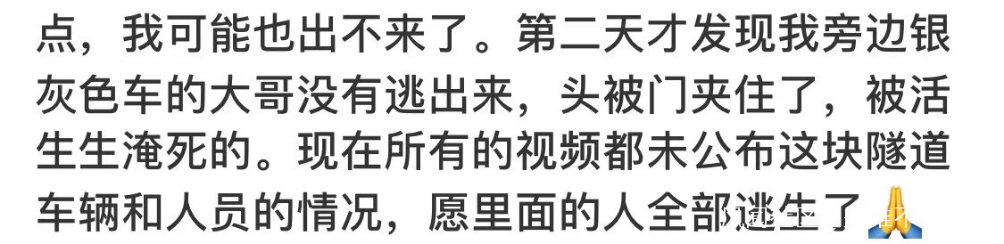 記錄中看出,該博主當天16:03時報了平安。並且堵了2個小時之久,無人疏通。水瞬間淹沒了隧道,她也差點沒有逃生。