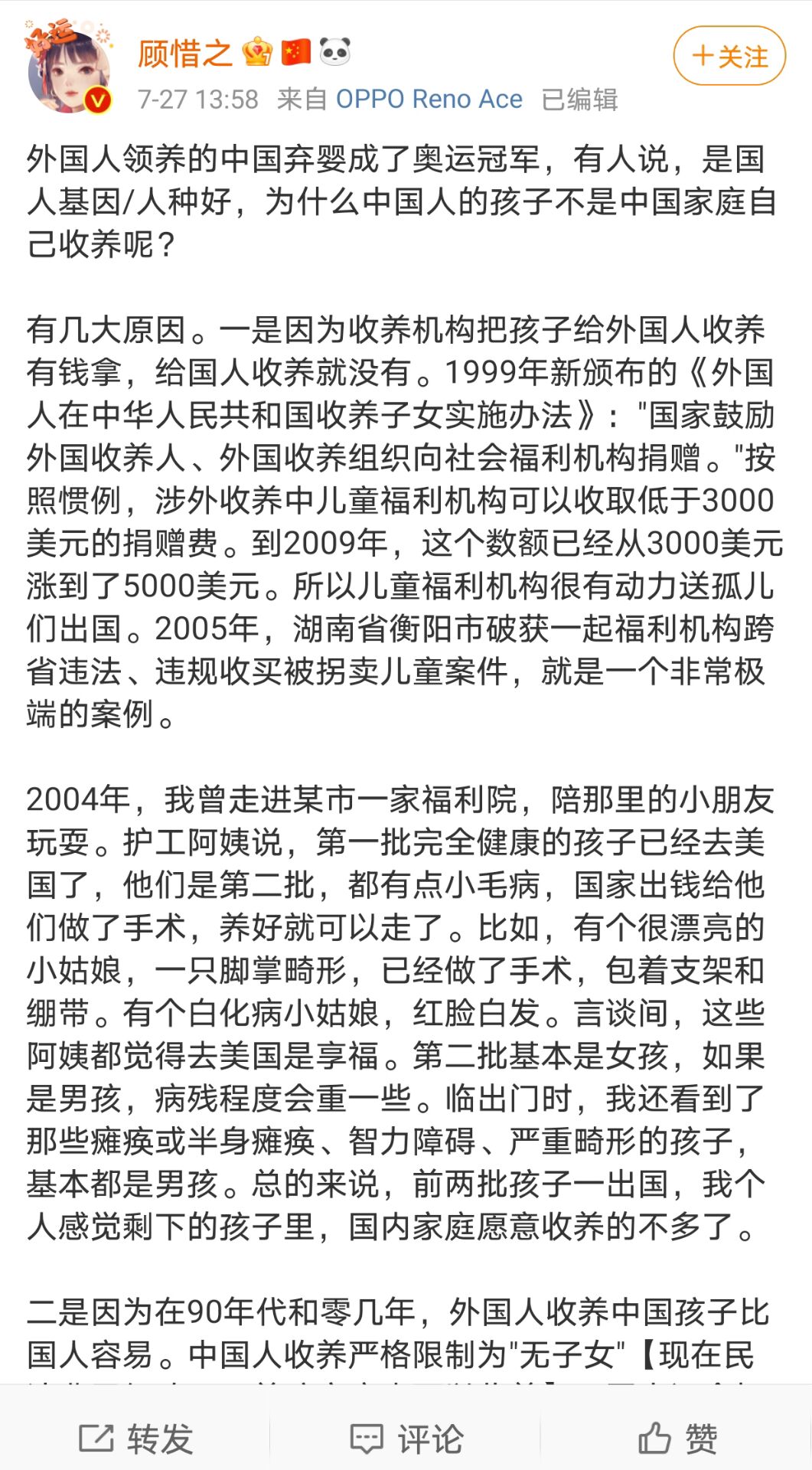 外國人領養的中國棄嬰成了奧運冠軍,有人説,是國人基因/人種好,為什麼中國人的孩子不是中國家庭自己收養呢?