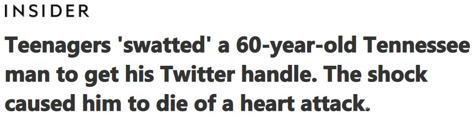 INSIDER: 據美國全國廣播公司新聞報道,田納西州一名 60 歲的男子在被想要擁有他寶貴推特賬號的青少年“特警猛擊”後死亡。