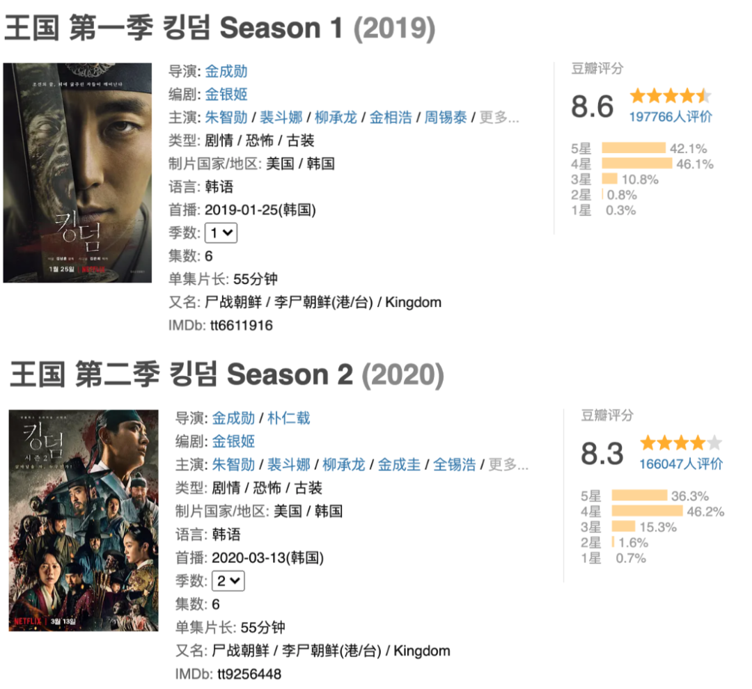 第一季超19萬人打出8.6的高分,第二季熱度不減,超16萬人打出8.3分。