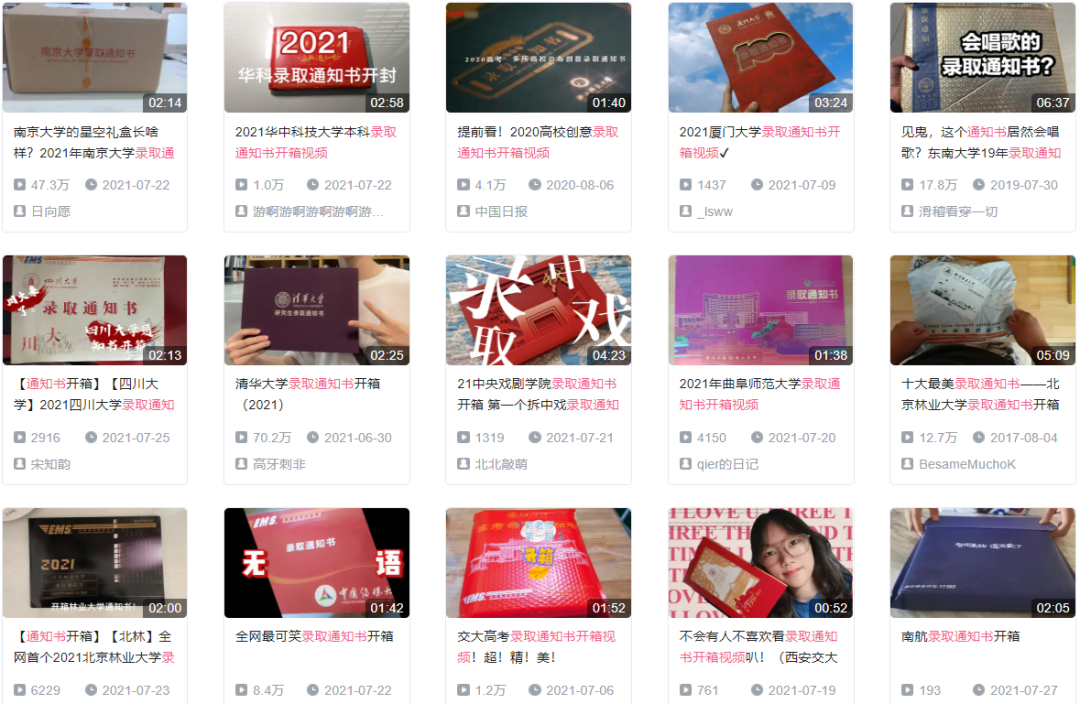 一場轟轟烈烈的“錄取通知書開箱視頻”大比拼,正在B站如火如荼地展開。