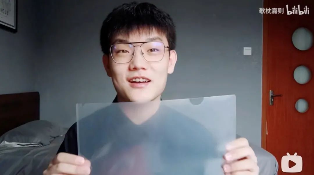 做開箱視頻的學生,只能舉着學校附送的塑料文件夾,做了一個長長的特寫。