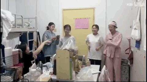 視頻裏,有她們精緻的擺拍日常,偶爾的努力學習,更有平地摔跤,寢室裏的杯盤狼藉,以及六個人素面朝天的羣魔亂舞。