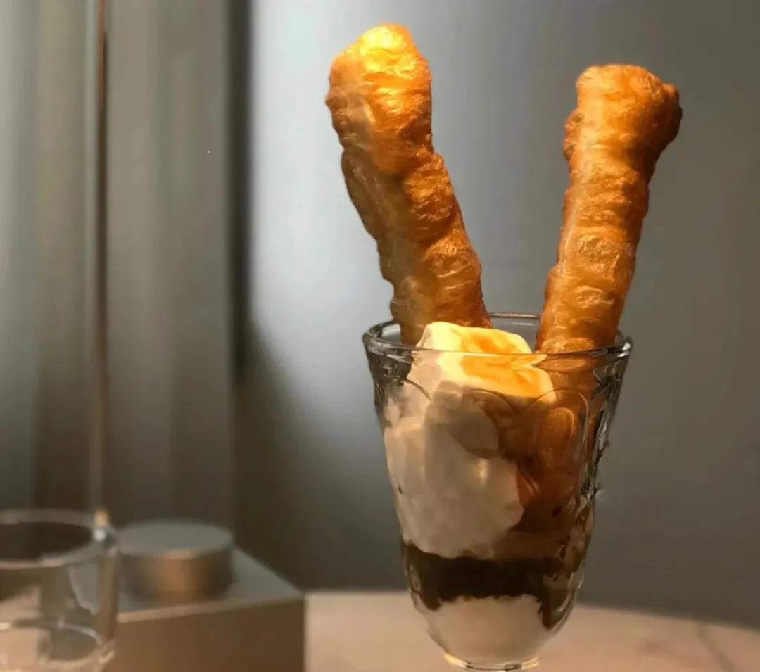 瀋陽的一個早餐店,推出了**“油條美式”**,一杯美式+一根油條,成為了瀋陽乾飯人的精緻早餐。