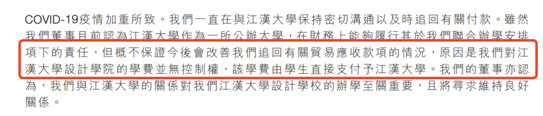 一方面,天有教育與江漢大學合作辦學的江漢大學設計學院,其貿易應收款正逐年增加。
