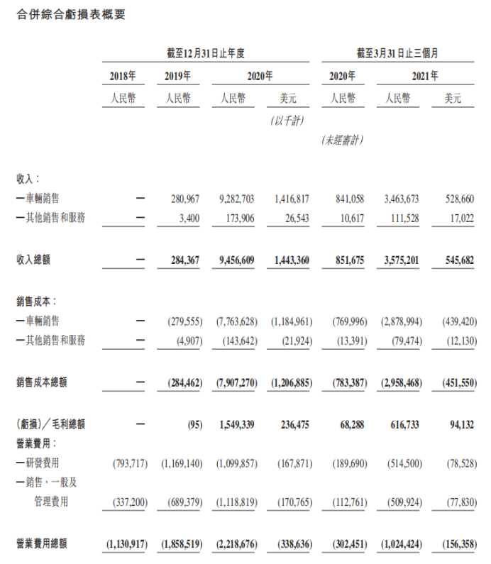 與此同時,理想營收數據也在不斷地爬台階。理想2019年、2020年以及2021年第一季度的營收分別為2.84億元、94.57億元和35.75億元,去年同期,這個數據還是8.52億元。
