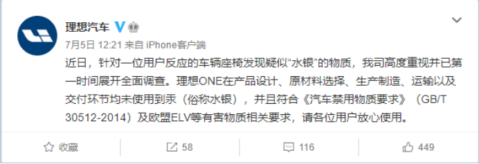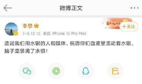 但讓理想深陷“水銀門”事件的,卻並非理想官方的態度,而是李想本人的一條微博。7月5日,李想在微博怒斥: