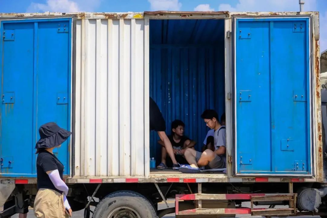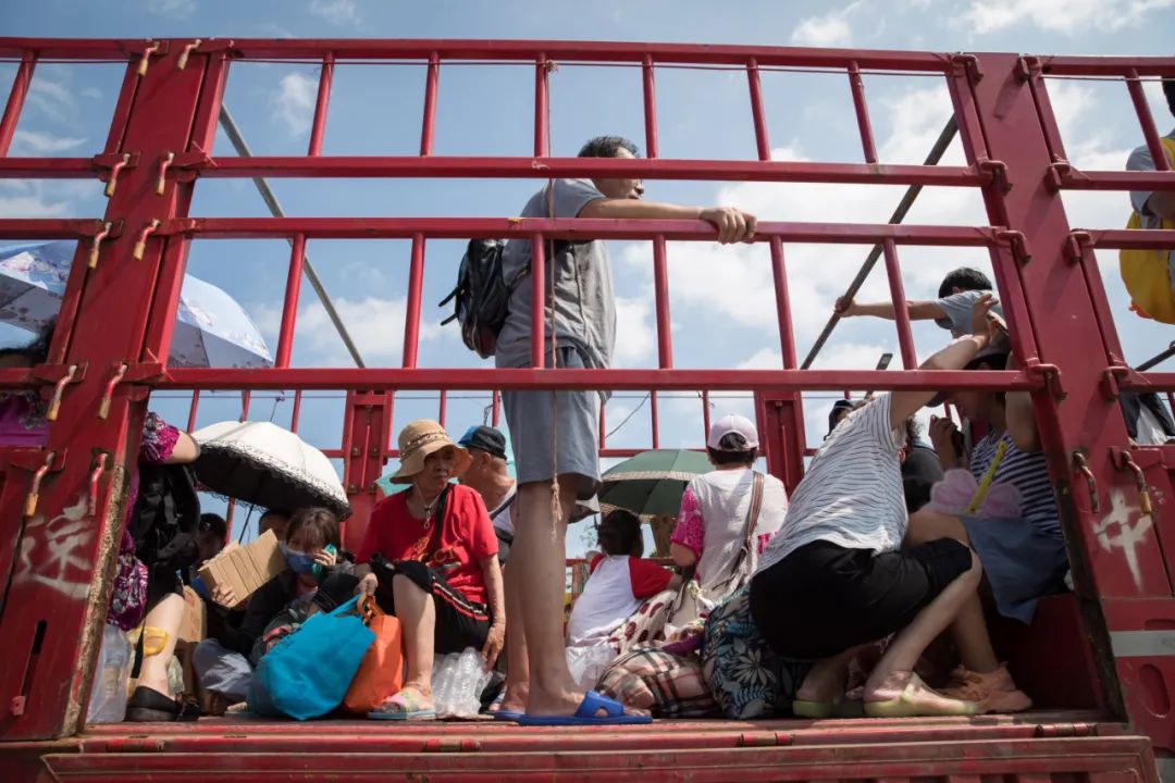 卡車一輛接一輛地把羣眾往城外轉移(攝影/郭嘉亮)