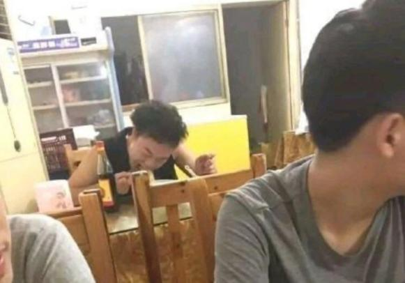 看他在路邊小麪館吃麪時,這猙獰的小表情: