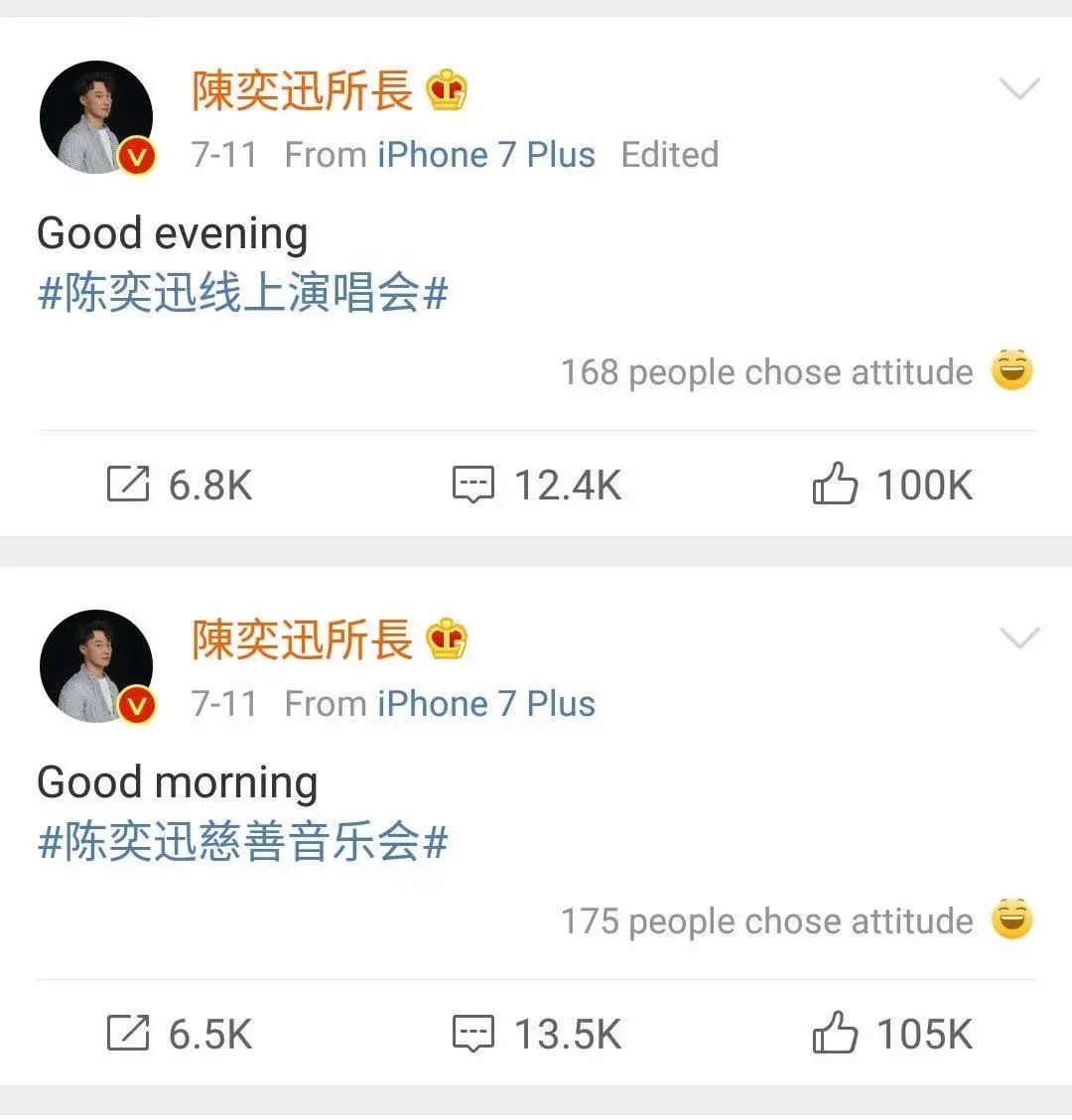 疫情最嚴重的時候,陳奕迅為了彌補歌迷的遺憾,也為了給更多人帶去陪伴和温暖,他連開了兩場線上演唱會,一次是在日出,一次是在日落。