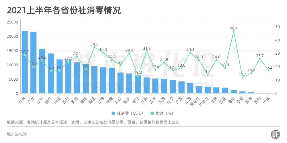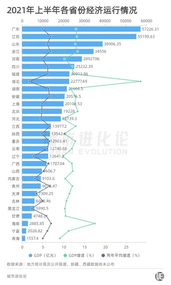 截至7月27日,除西藏、新疆外,已有29個省份公佈了2021年上半年經濟運行情況。