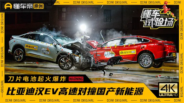 事情大概是這樣,懂車帝拉了輛價位差不多的比亞迪漢 EV 和極狐阿爾法 S 做高速對撞試驗,結果漢 EV 被撞的稀爛,隔那放了兩天後還自燃了。